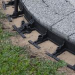 Aan beide uiteinden van de borderrand zit een koppelsysteem: aan de ene kant een pen, aan de andere kant een sleuf. Die klik je stevig in elkaar, eventueel met behulp van een hamer, voor een lange, stevige lijn zonder onderbreking.