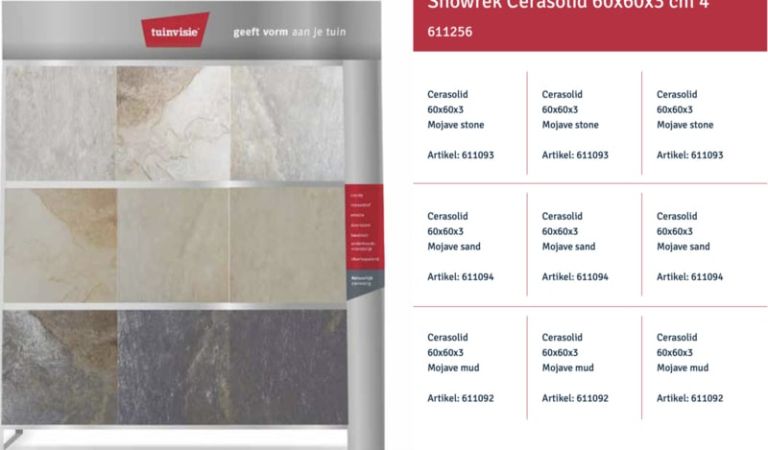 Bij Bestratingsmarkt.com ben je verzekerd van de beste prijs in Nederland. Dankzij onze ruime voorraad en snelle levering kun je ook nog eens snel aan de slag met jouw tuinproject. Bestel daarom vandaag nog en ontdek de hoogwaardige kwaliteit en voordelige prijzen van de Cerasolid keramische tegel 60x60x3 bij Bestratingsmarkt.com.