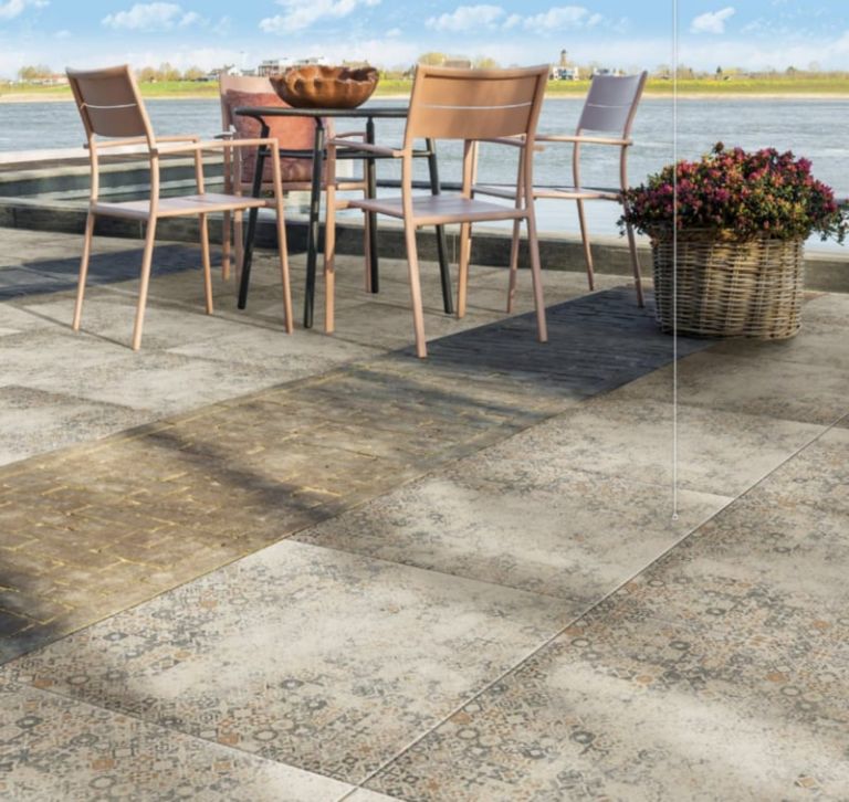 - Kleurvast: de keramische toplaag is bestand tegen UV-stralen en andere weersinvloeden. Daarom blijven de tegels hun kleur behouden, ook bij blootstelling aan zonlicht. Ook groene aanslag komt minder snel voor.