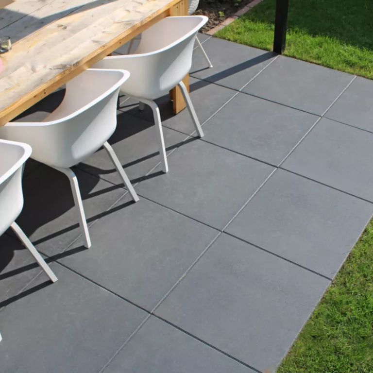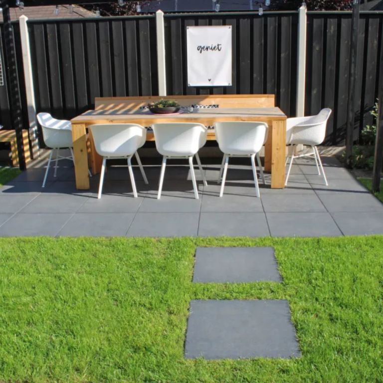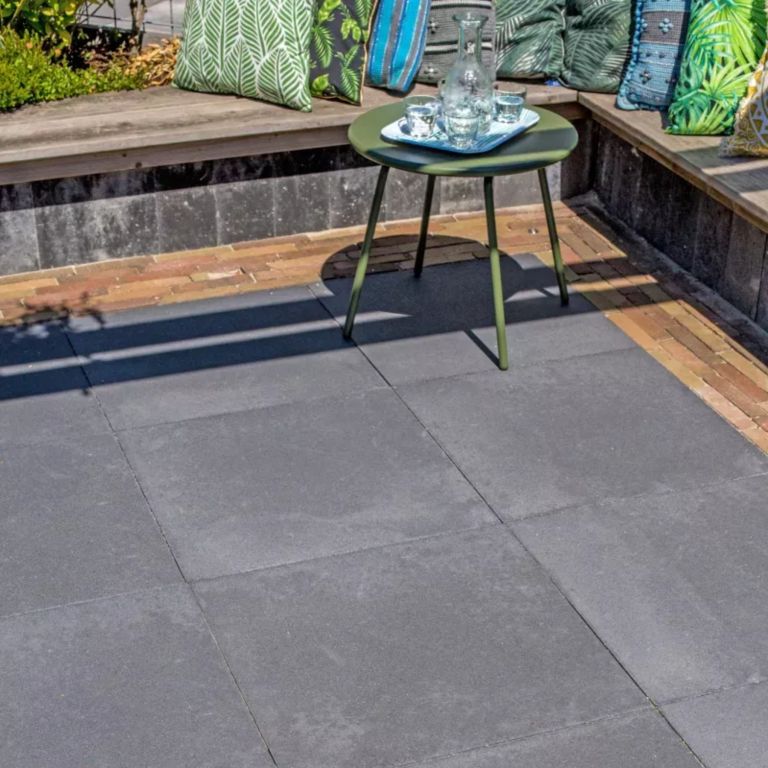 Met de Mondo Facet 60x60x4 Pit Black profiteer je van eenvoudige verwerkt. Je hebt namelijk geen speciale ondergrond nodig. Een geëgaliseerd zandbed is dan ook voldoende. De tegels worden met voeg gelegd, dat wil zeggen met gelijke afstand van elkaar. Welke voegbreedte je aan wilt houden kan je zelf bepalen, maar je kan ook voegkruizen hanteren om het jezelf makkelijker te maken. Afvoegen met voegzand zorgt ervoor dat je terras strak afgewerkt wordt en voorkomt onkruidgroei tussen de tegels, zodat je minder tijd kwijt bent aan onnodig onderhoud. Rond je bestrating af door deze op te sluiten met opsluitbanden. Hiermee voorkom je verzakkingen en verschuivingen. Zo blijven de Mondo Facet 60x60x4 Pit Black betontegels stevig op hun plaats, zelfs na intensief gebruik.