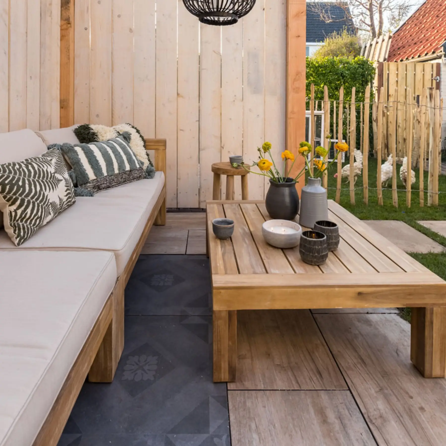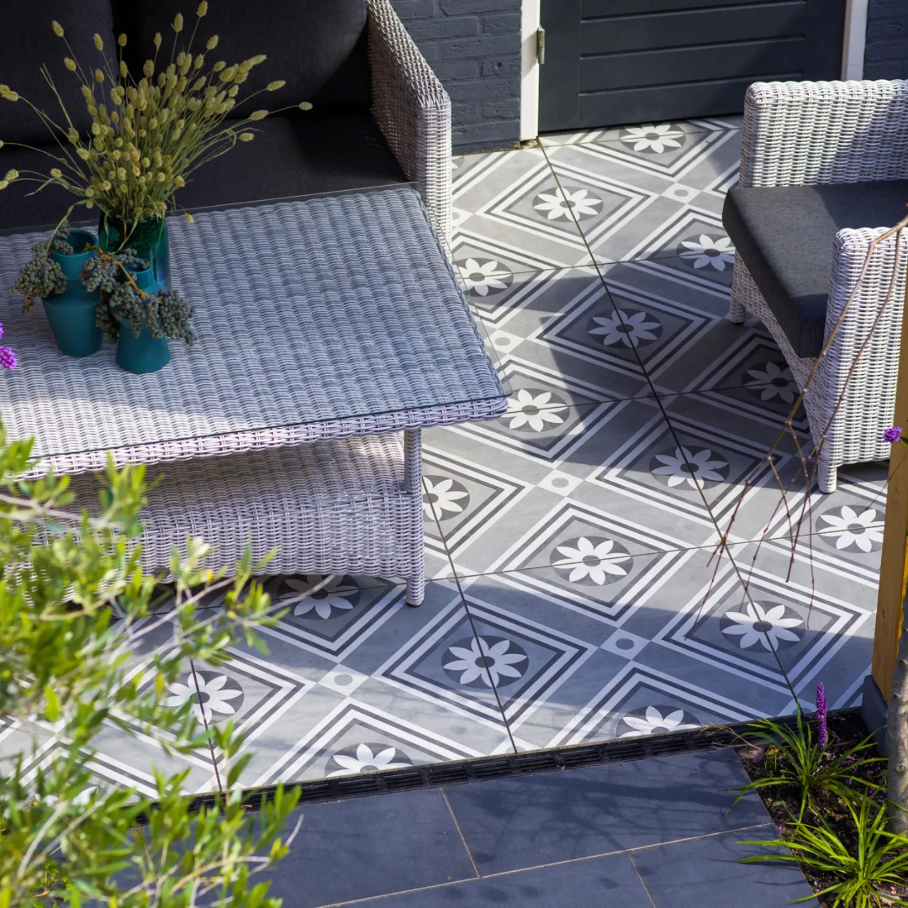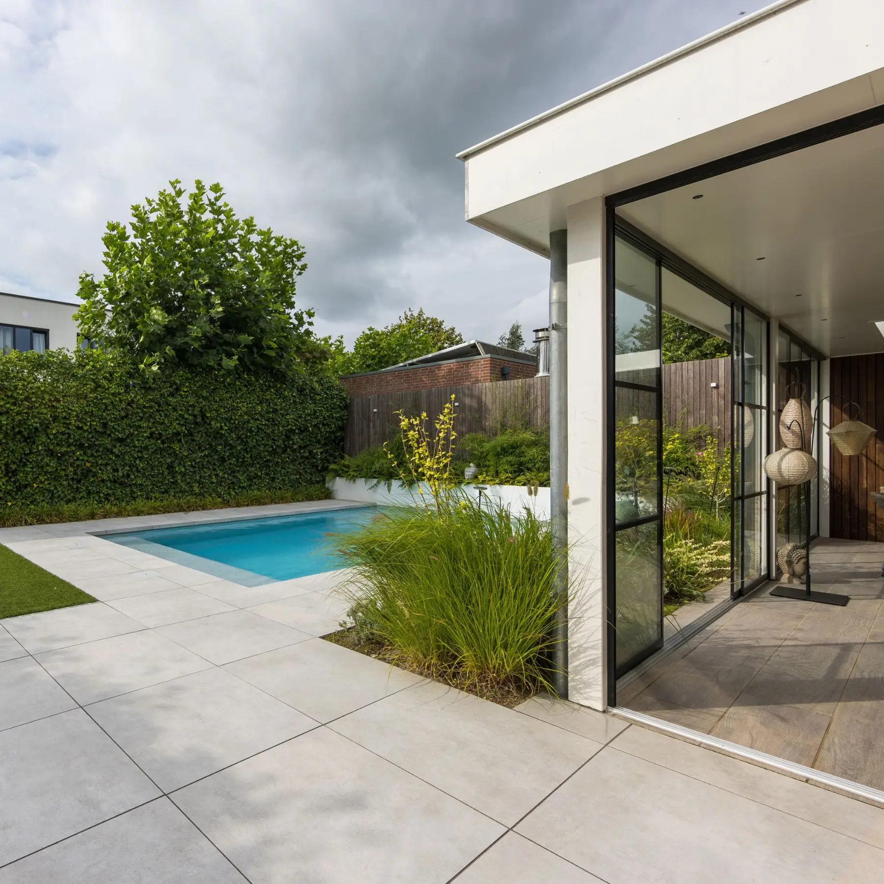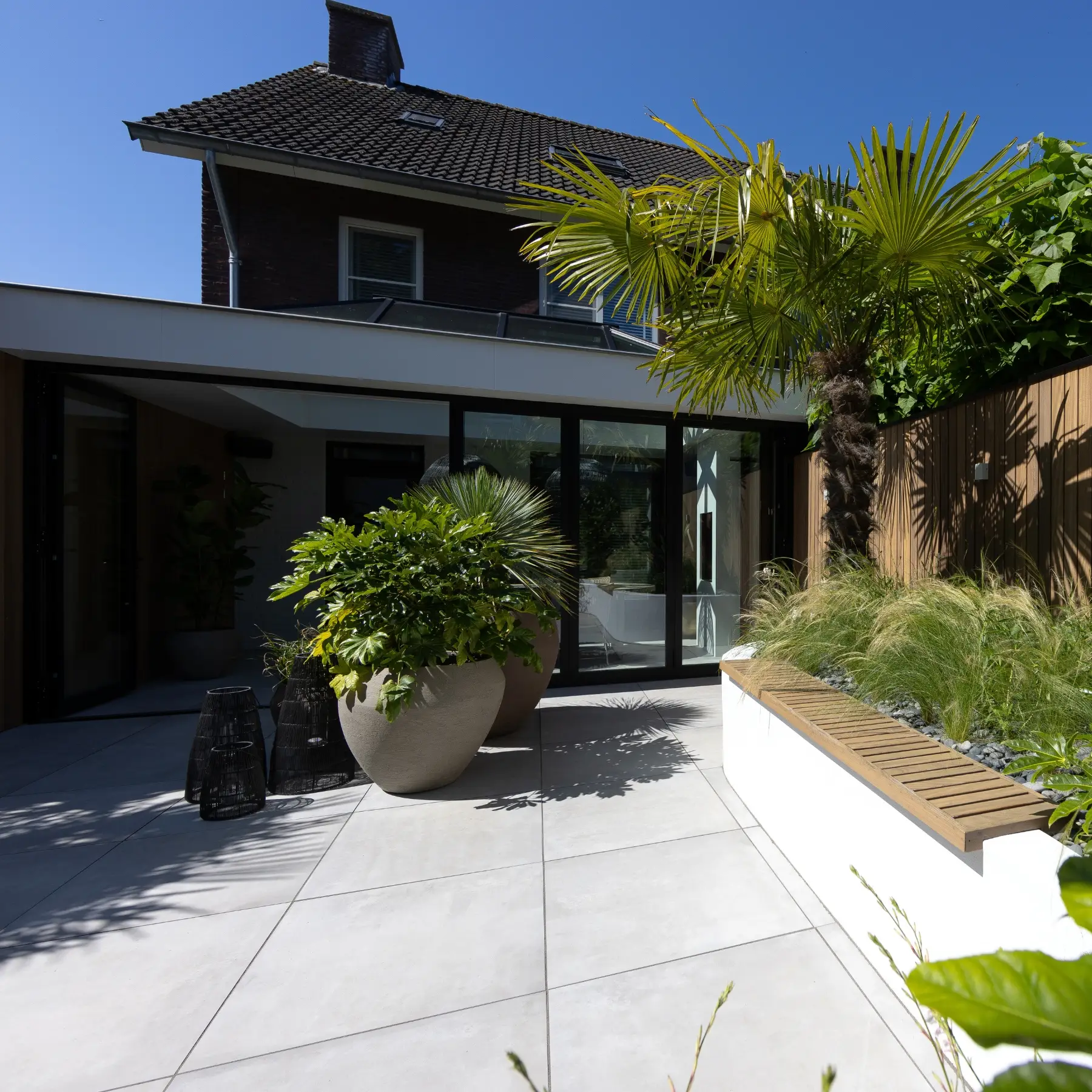 Zelfs met avondtuin (verlichting) en vele keramische tegels.