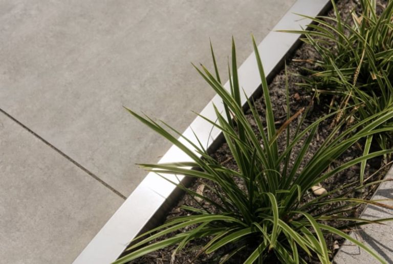Nieuw in ons assortiment zijn de metalen kantopsluitingen. In dit assortiment bieden we producten van staal in verschillende uitvoeringen, die niet alleen geschikt zijn voor het aanbrengen van randbegrenzingen met rechte lijnen, maar ook voor organische vormen. De randbegrenzingen Inox plaats je als finishing touch over een band van 5 centimeter breed.